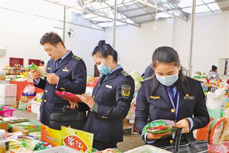 圖為阿里地區(qū)市場(chǎng)監(jiān)督局工作人員在菜市場(chǎng)進(jìn)行專項(xiàng)檢查。記者 永青 攝