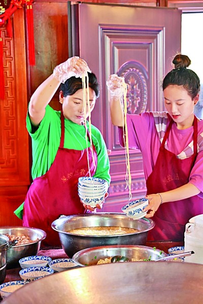 加加面是芒康鹽井的一種美食,顧名思義就是“不停地加”。圖為當(dāng)?shù)匕傩罩谱骷蛹用?。光明日?qǐng)?bào)記者 劉宇航攝