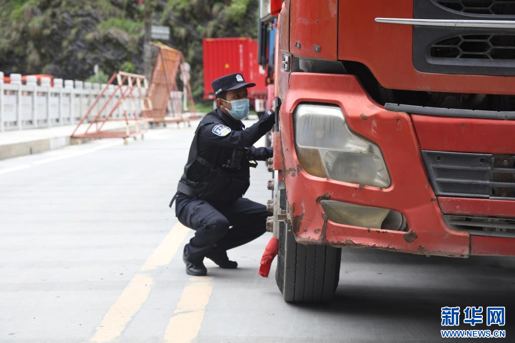 這是扎西頓珠正對入境貨車進行車體檢查。(新華網(wǎng)發(fā) 鄒興國 攝)