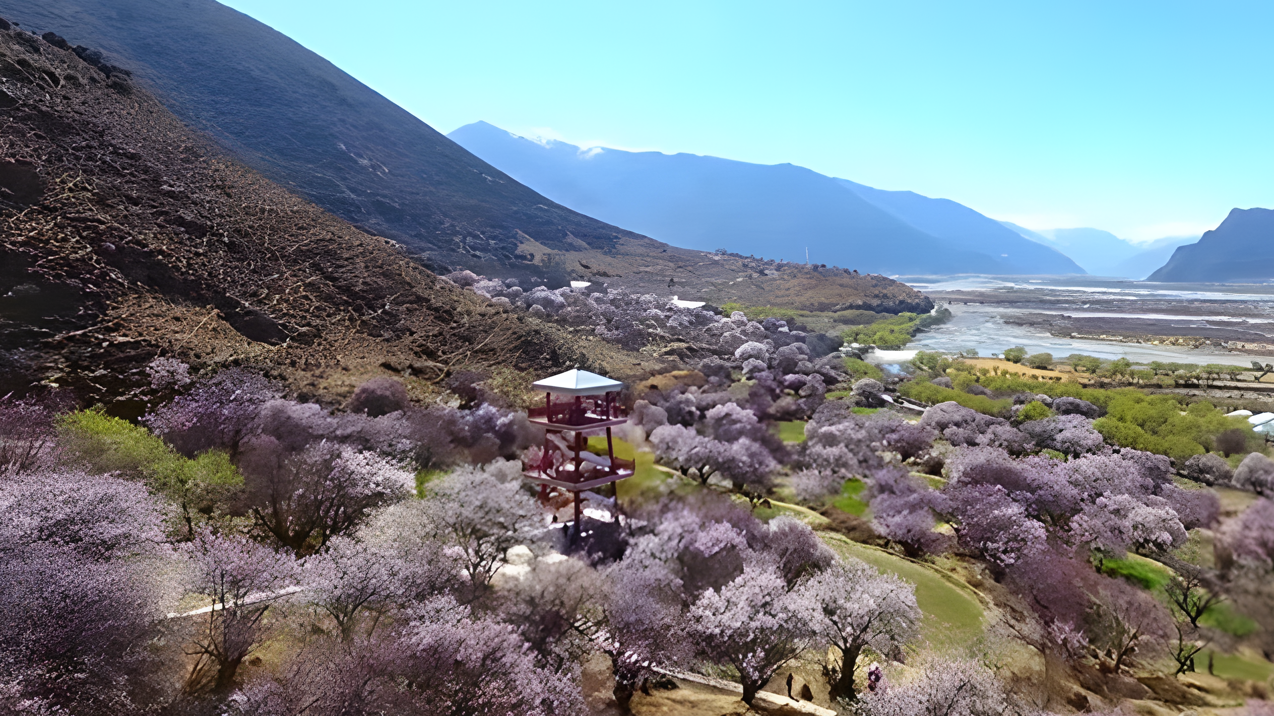 每年春天嘎拉村盛放的桃花