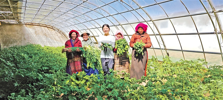 2017年,雙湖縣投建了11座蔬菜大棚。經(jīng)過當(dāng)?shù)馗刹亢湍撩駛兣Ω藕托量嘣囼?yàn),現(xiàn)在種植的蔬菜瓜果年產(chǎn)量可達(dá)4噸,每年給當(dāng)?shù)啬撩袢罕姲l(fā)放蔬菜分紅和現(xiàn)金分紅共計(jì)12萬(wàn)元左右,857人從中受益。(下轉(zhuǎn)第三版)(上接第一版)