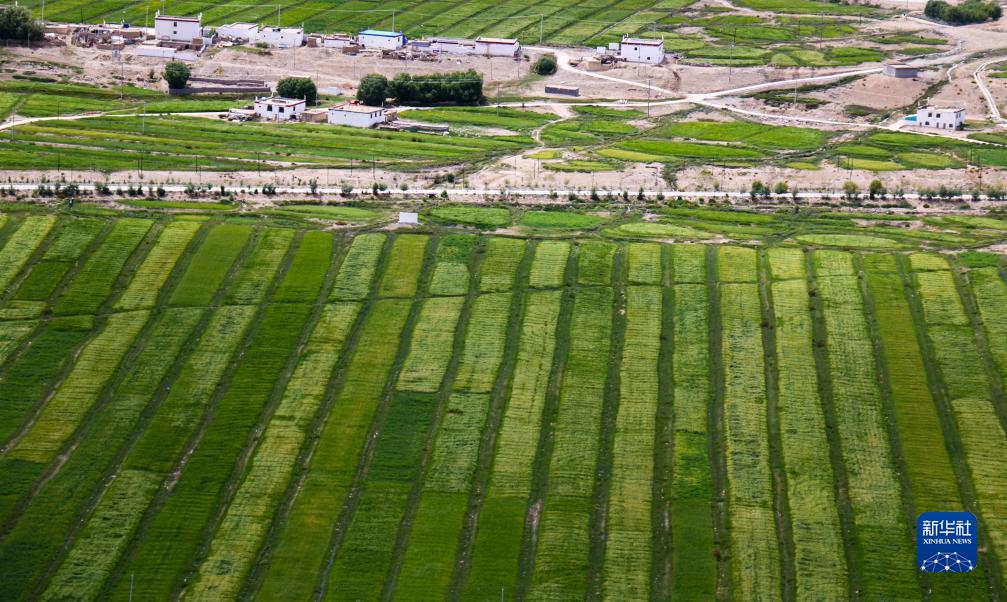 被青稞田點(diǎn)綴的西藏普蘭縣村莊(8月12日攝)。新華社記者 曹檳 攝