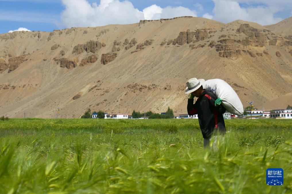 8月12日,西藏阿里地區(qū)普蘭縣赤德村村民在青稞田里勞作。新華社記者 聶毅 攝