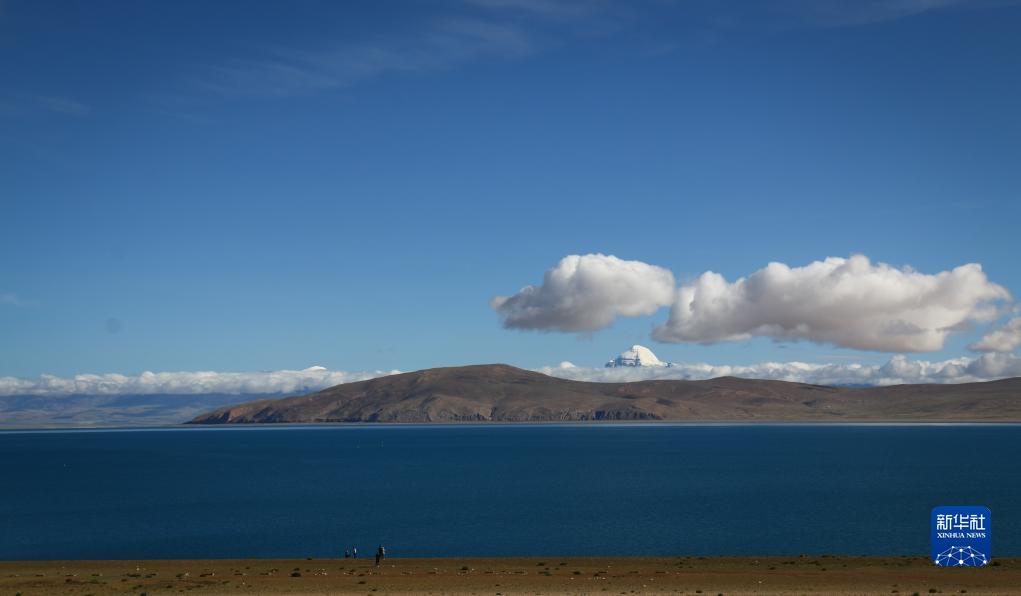 岡仁波齊峰和湖水交相輝映(8月13日攝)。新華社記者 聶毅 攝