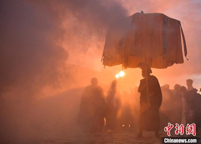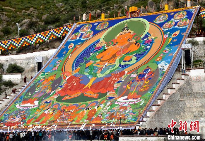 8月16日,拉薩哲蚌寺舉行展佛活動(dòng)。中新社記者 李林 攝