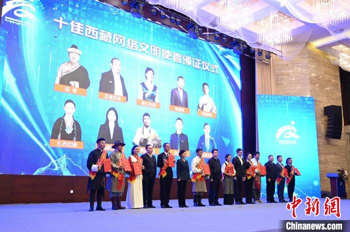圖為活動(dòng)表彰了“十佳西藏網(wǎng)絡(luò)文明使者”。趙朗攝