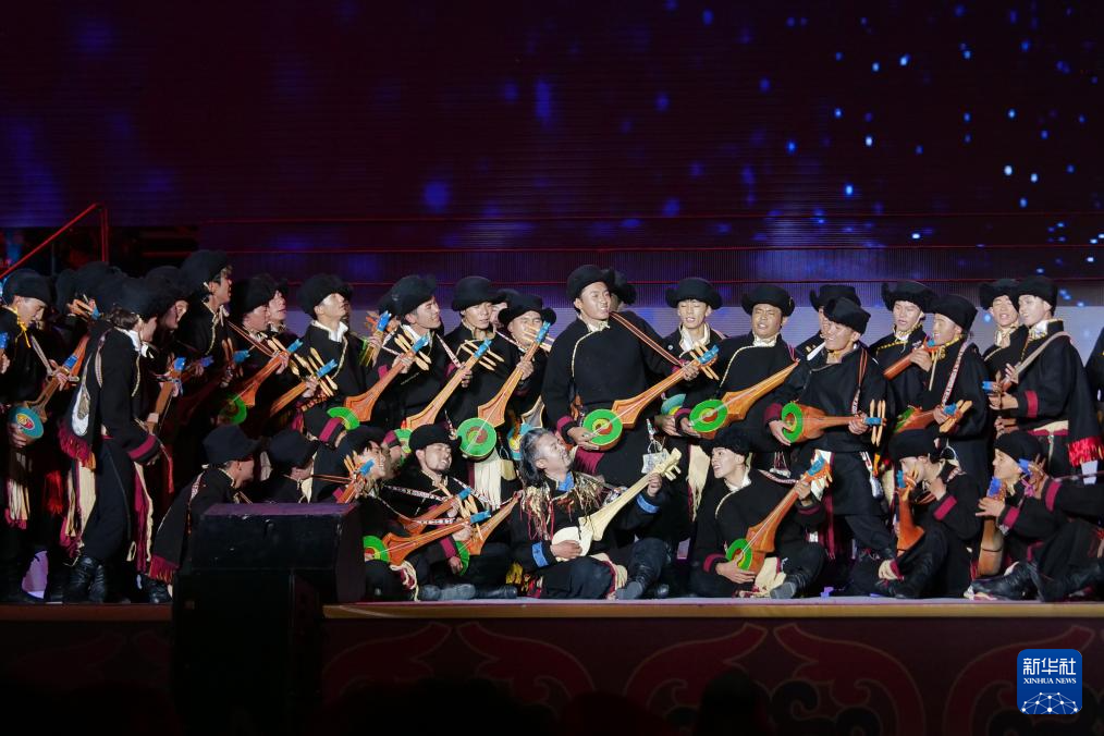 第八屆象雄文化旅游節(jié)開幕式現(xiàn)場(chǎng)的文藝表演(8月21日攝)。新華社記者 劉文博 攝