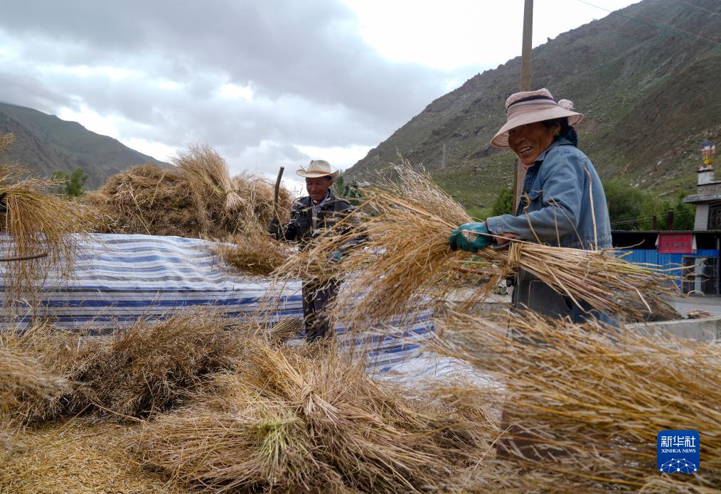 目前,西藏各地進(jìn)入秋收時(shí)節(jié)。西藏山南市乃東區(qū)的農(nóng)民在抓緊收獲作物。新華社記者 姜帆 攝
