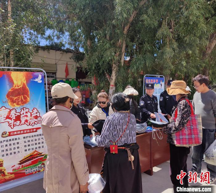 圖為普法宣傳活動(dòng)現(xiàn)場,民警向民眾講解掃黑除惡相關(guān)知識(shí)。黃創(chuàng)偉 攝