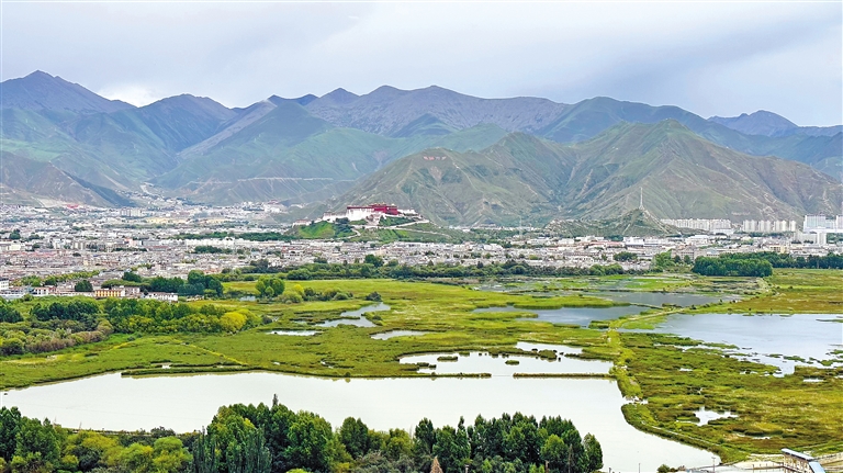 拉魯濕地有著“拉薩之肺”“天然氧吧”的美譽(yù)。站在觀鳥臺上,林地、湖泊、水鳥、城市融為一體,美不勝收。