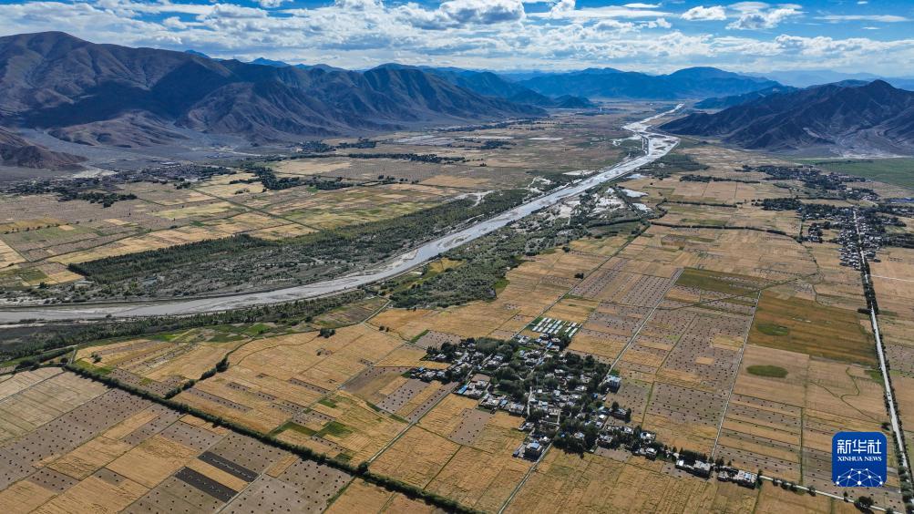 西藏日喀則市年楚河流域糧食長勢喜人(9月6日攝 無人機照片)。新華社記者 晉美多吉 攝
