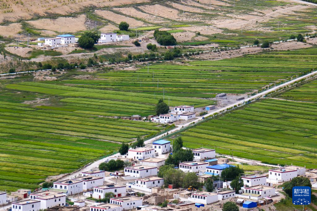 被青稞田點綴的西藏普蘭縣村莊(8月12日攝)。新華社記者 曹檳 攝