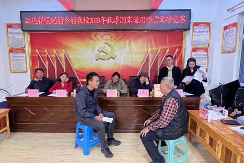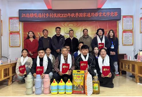 今年是《中華人民共和國(guó)國(guó)家通用語言文字法》頒布施行22周年。為持續(xù)深入推進(jìn)國(guó)家通用語言文字學(xué)習(xí),鑄牢中華民族共同體意識(shí),豐富群眾精神文化生活,西藏自治區(qū)黨校駐村工作隊(duì)創(chuàng)新學(xué)習(xí)方式和學(xué)習(xí)載體,于9月7日舉辦昌都市江達(dá)縣江達(dá)鎮(zhèn)嘎通村鄉(xiāng)村夜校2023年秋季國(guó)家通用語言文字競(jìng)賽??h有關(guān)部門領(lǐng)導(dǎo)、駐村工作隊(duì)全體成員、村“兩委”和黨員群眾代表共計(jì)60余人參加。競(jìng)賽由縣委副書記、駐村總領(lǐng)隊(duì)、駐村工作隊(duì)隊(duì)長(zhǎng)王煦樟和鄉(xiāng)村振興專干貢秋拉姆主持。