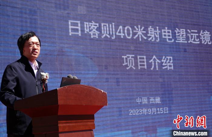 9月15日,中國(guó)科學(xué)院上海天文臺(tái)臺(tái)長(zhǎng)沈志強(qiáng)在日喀則40米射電望遠(yuǎn)鏡項(xiàng)目啟動(dòng)會(huì)上,介紹該項(xiàng)目相關(guān)情況。中新網(wǎng)記者 孫自法 攝