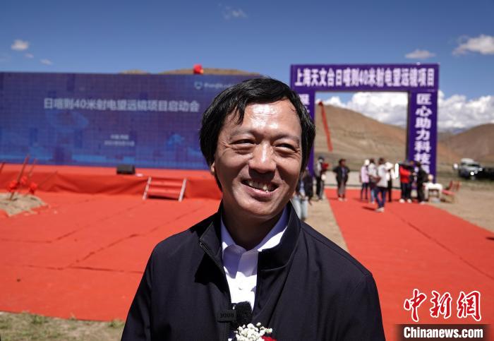 9月15日,中國(guó)科學(xué)院上海天文臺(tái)臺(tái)長(zhǎng)沈志強(qiáng)在日喀則40米射電望遠(yuǎn)鏡項(xiàng)目啟動(dòng)會(huì)后,現(xiàn)場(chǎng)微笑接受媒體采訪。中新網(wǎng)記者 孫自法 攝