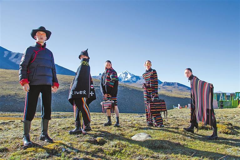 本次時尚秀展出服飾均由江孜縣精通氆氌編織的婦女手工制作,并融入了上海援藏企業(yè)的現(xiàn)代時尚設計。