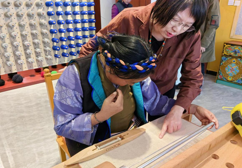 算上這次,已是郭秀玲今年第九次進(jìn)藏了。在上海援藏干部聯(lián)絡(luò)組的幫助下,作為“上海工匠”產(chǎn)業(yè)援藏第一人,從去年7月開始,郭秀玲和團(tuán)隊(duì)開始深入西藏腹地,與日喀則江孜當(dāng)?shù)氐霓r(nóng)村合作社、地毯廠溝通交流、相互學(xué)習(xí),逐一走訪鄉(xiāng)村手工作坊,并改造氆氌織機(jī),既保留了西藏元素,又與時(shí)代潮流相結(jié)合。2022年11月,沙涓時(shí)裝和江孜縣簽約手工工坊項(xiàng)目?!拔覀児餐铝τ谕苿赢?dāng)?shù)貍鹘y(tǒng)的牦牛絨、羊絨等非遺氆氌手工織品走向國際市場,打造屬于日喀則的國際高端品牌,更好展現(xiàn)藏文化魅力,助力非遺的‘活性傳承’?!闭劶暗浇螐?fù)興西藏氆氌工藝的初衷,郭秀玲如是說。