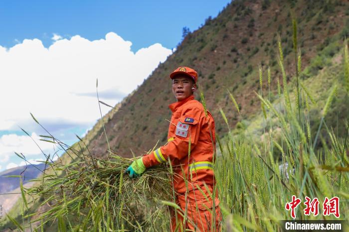 經(jīng)過三天的收割,至9月18日,左貢縣森林消防員為農(nóng)牧民收割青稞40多畝。