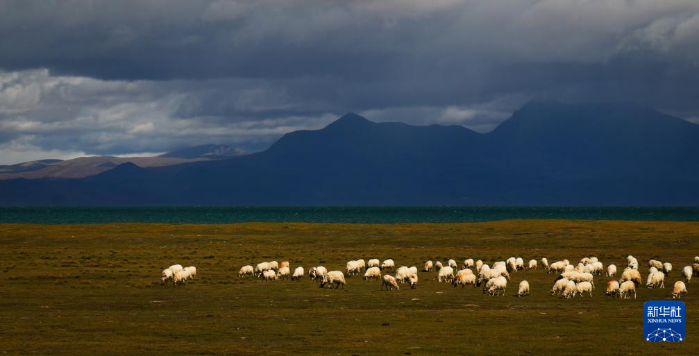 錯那湖畔的羊群(9月22日攝)。新華社記者 曹檳 攝