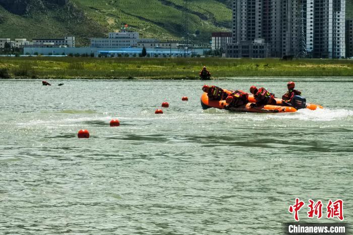 圖為參賽隊(duì)員在水域救援比武現(xiàn)場(chǎng)。昌都市森林消防支隊(duì) 供圖