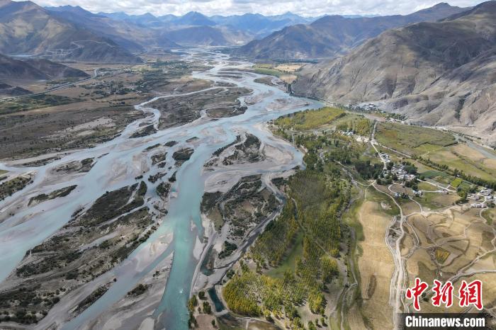 圖為9月29日,航拍拉薩河達孜區(qū)段水系風光。江飛波 攝