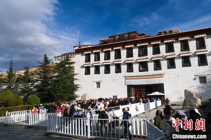 圖為9月30日上午,游客排隊進入布達拉宮參觀。江飛波 攝