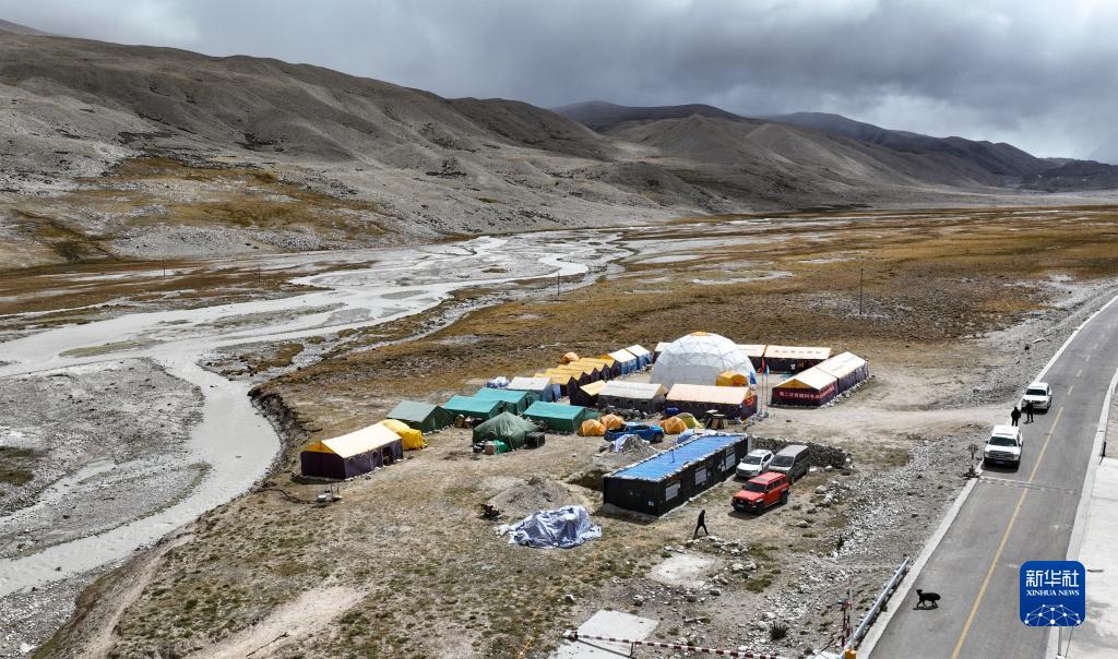 這是卓奧友峰登山大本營(yíng),科考隊(duì)員在這里開(kāi)展部分急進(jìn)高原人群健康研究(10月1日攝,無(wú)人機(jī)照片)。新華社記者 晉美多吉 攝