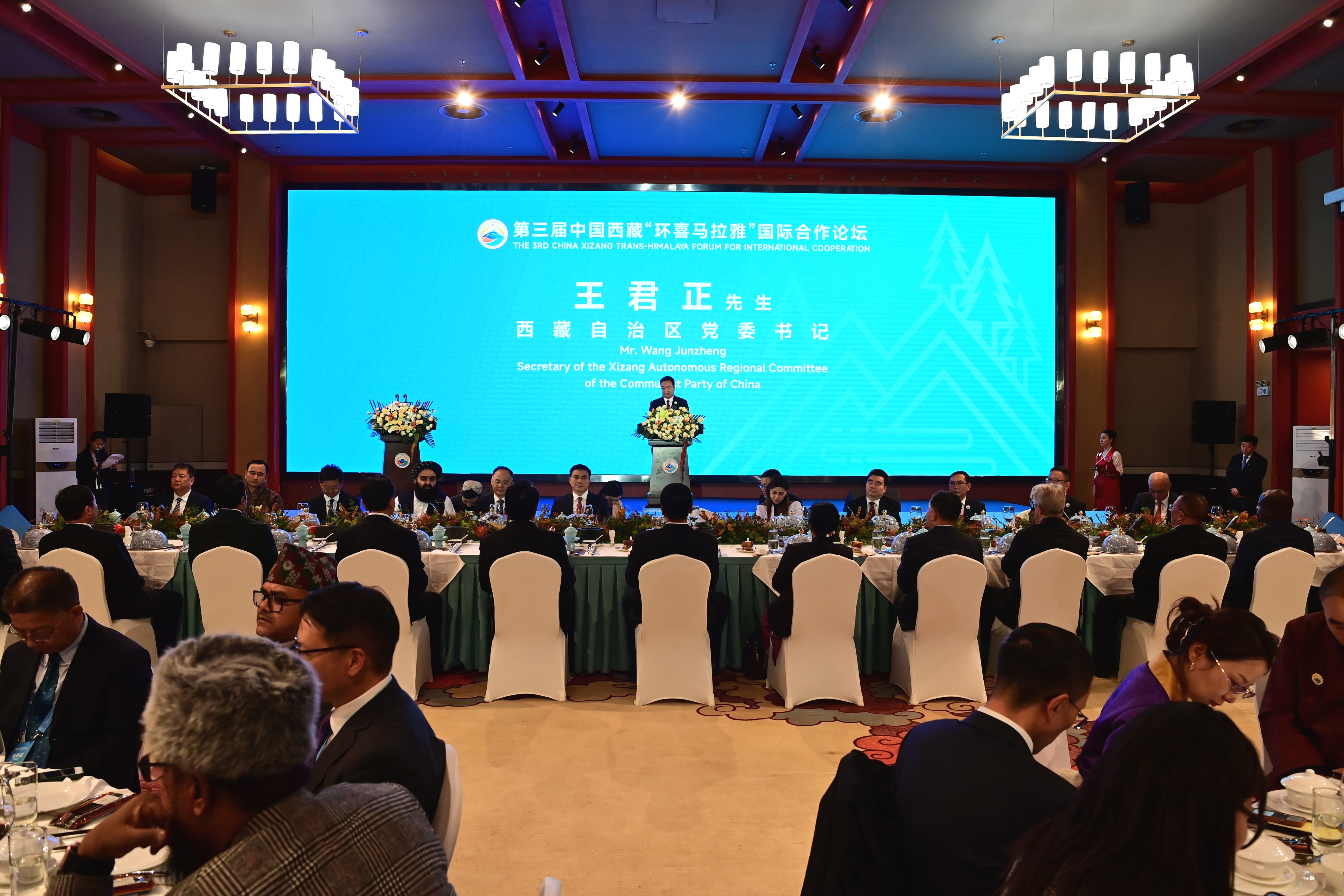 王君正代表自治區(qū)黨委、政府和全區(qū)各族人民,向出席中國西藏“環(huán)喜馬拉雅”國際合作論壇的中央和國家機關(guān)部委領(lǐng)導(dǎo)、各國政要、專家學(xué)者表示熱烈歡迎,向大家長期以來對西藏經(jīng)濟社會各項事業(yè)發(fā)展的支持表示衷心感謝。