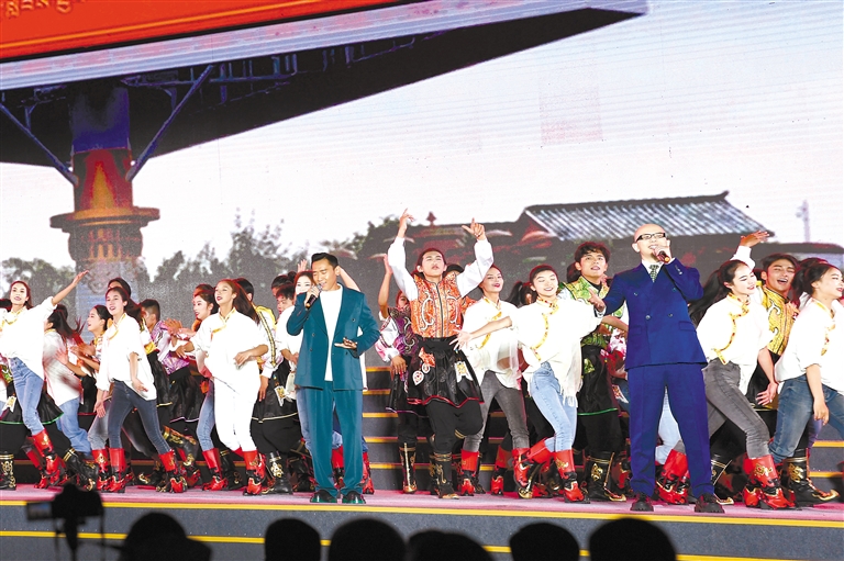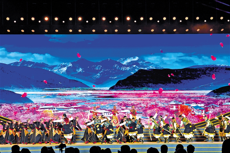 西藏自治區(qū)歌舞團(tuán)、林芝市民族藝術(shù)團(tuán)表演的開場歌舞《扎西德勒》。記者 洛?!z