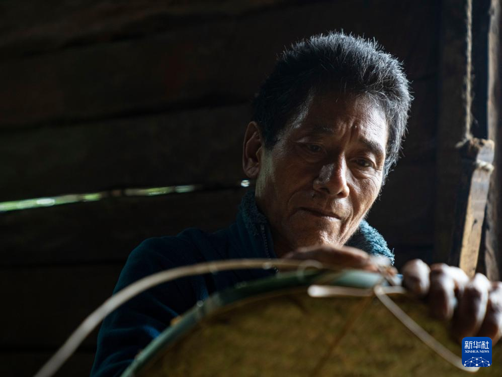在西藏墨脫縣背崩鄉(xiāng)巴登村,一名村民將藤竹條切削成適合的寬度(10月11日攝)。新華社記者 孫非 攝