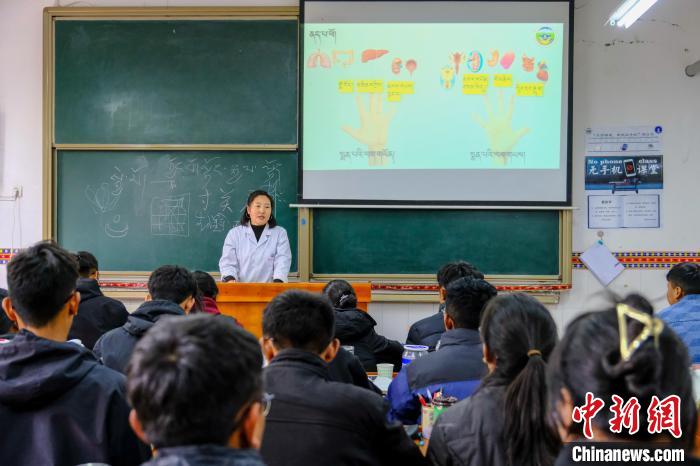 10月12日,西藏藏醫(yī)藥大學一課堂上,老師向同學們講述《四部醫(yī)典》中脈診相關內容。中新社記者 江飛波 攝