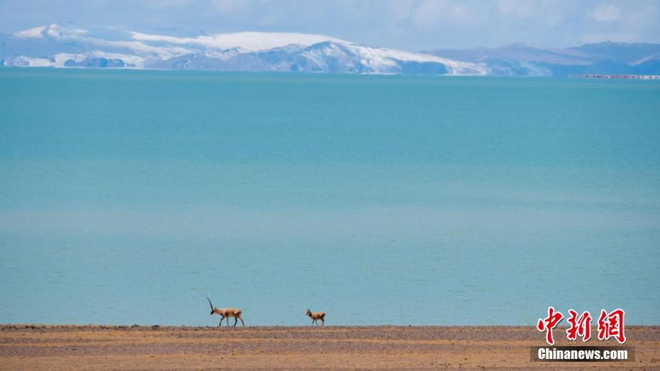 資料圖為西藏色林錯湖畔的藏羚羊和遠(yuǎn)處的雪山風(fēng)光。江飛波 攝