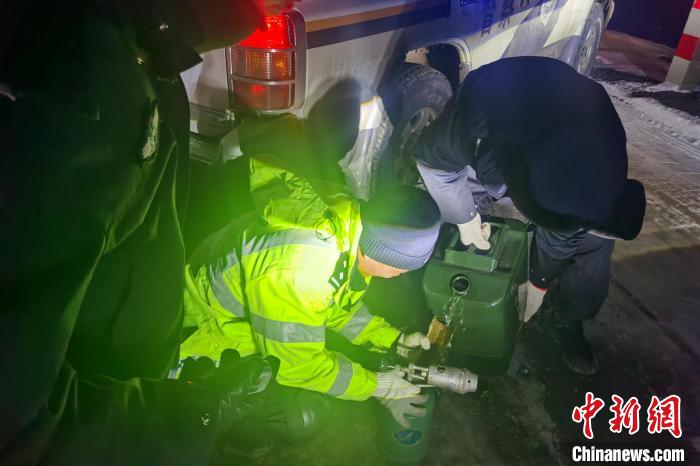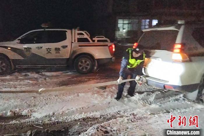圖為西藏安多警方對(duì)被困唐古拉山埡口的車(chē)輛進(jìn)行施救。安多縣公安局 供圖