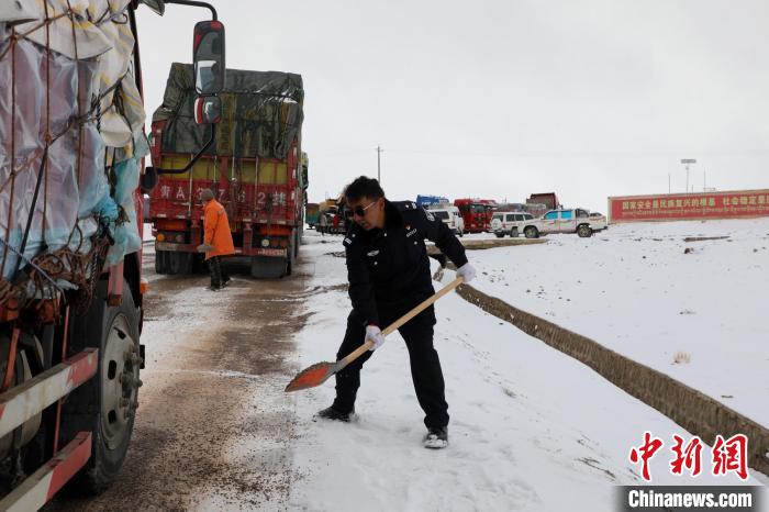 “現(xiàn)在唐古拉山路段處于不間斷堵車(chē)狀態(tài),昨天我們這一隊(duì)是從下午開(kāi)始除雪保通,持續(xù)到今天凌晨4點(diǎn)左右才全部疏通?!?1日下午,中新網(wǎng)記者連線西藏安多縣公安局交通管理中心秩序中隊(duì)隊(duì)長(zhǎng)達(dá)娃云旦,他介紹,10月17日以來(lái),國(guó)道109線唐古拉山段持續(xù)降雪,積雪結(jié)冰,道路通行受阻。安多警方“以雪為令”全力救援被困乘客、車(chē)輛,進(jìn)行除雪保通。