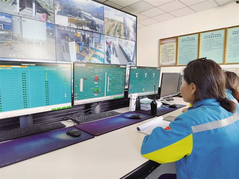 拉薩暖心公司工作人員通過(guò)中控系統(tǒng)監(jiān)控拉薩天然氣站安全情況。
