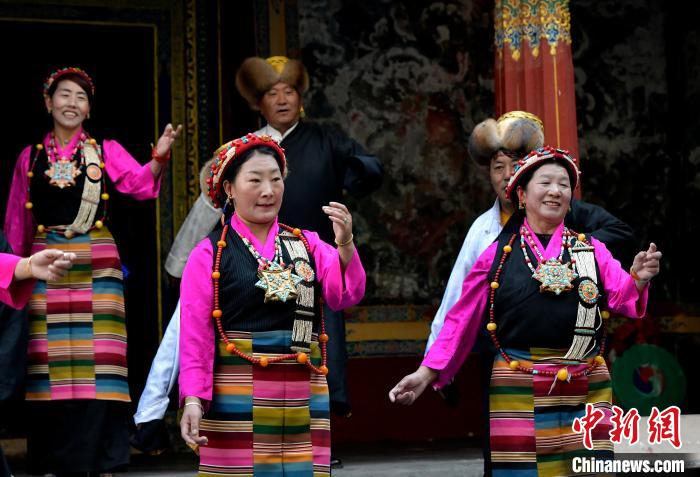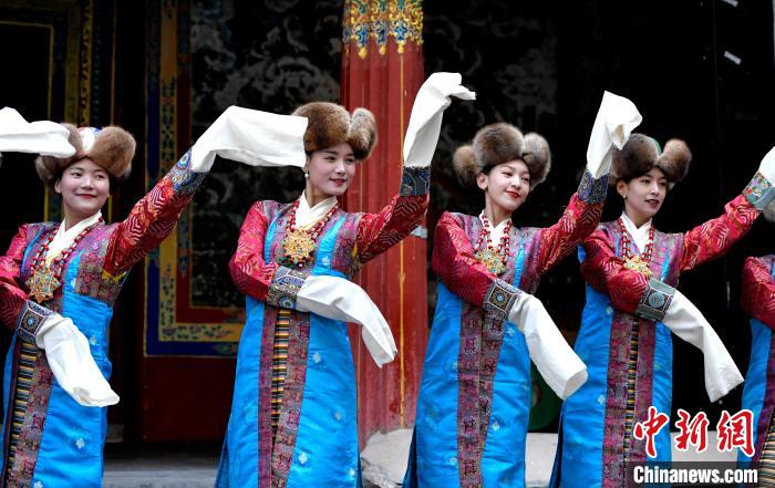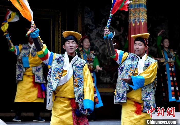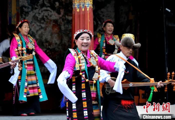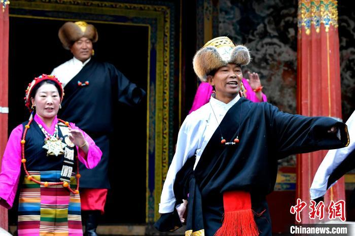 據(jù)悉,堆諧最早流傳于日喀則,是由扎念琴樂器伴奏的舞蹈。扎念琴是堆諧“邊彈、邊唱、邊舞”表演風格形成的關鍵。作為日喀則市桑珠孜區(qū)的重要非遺項目之一,堆諧以其獨特的表演形式,受到了眾多觀眾的喜愛。日喀則市諧欽則起源于1883年,其韻調(diào)古樸,表現(xiàn)獨特,顯示出濃郁的西藏風景和鮮明的地方特色。諧欽演員們精湛的表演技藝、華麗的戲服,將古老的西藏歌舞藝術完美呈現(xiàn)在這座古建筑前。