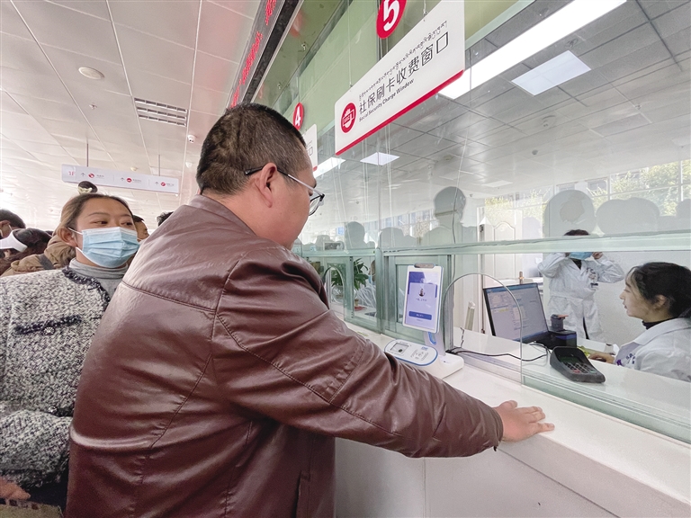 參保人員正在使用刷臉支付。記者 趙越 攝