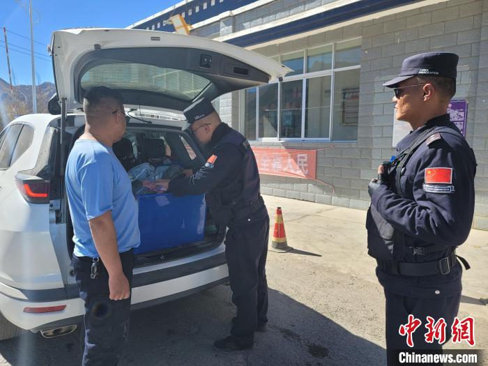 圖為西藏日喀則邊境管理支隊魯魯邊境檢查站民警對過往車輛及隨車人員進(jìn)行檢查。魯魯邊境檢查站供圖