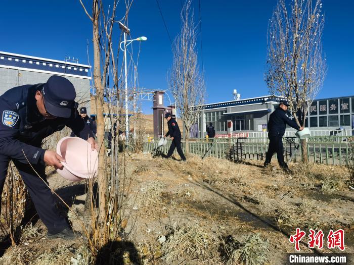圖為魯魯邊境檢查站組織民警在營區(qū)周邊和查驗通道附近開展冬灌排水、施肥等綠化養(yǎng)護(hù)工作。魯魯邊境檢查站供圖