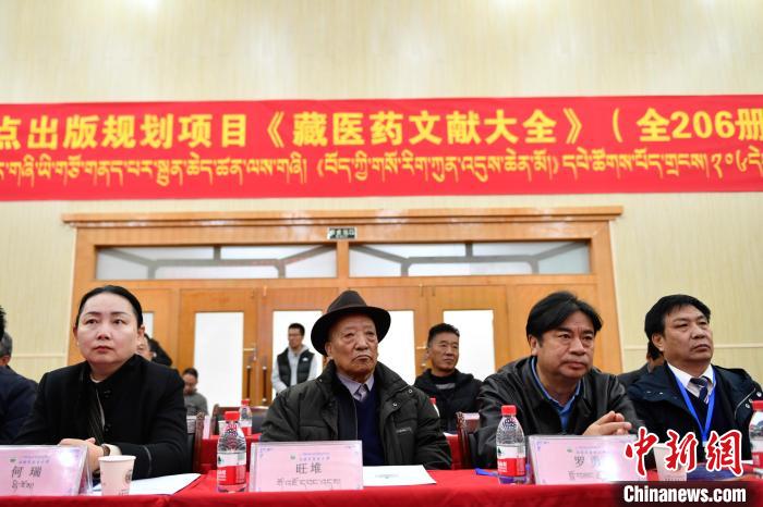 圖為 《藏醫(yī)藥文獻(xiàn)大全》首發(fā)暨贈(zèng)書儀式現(xiàn)場。貢嘎來松 攝