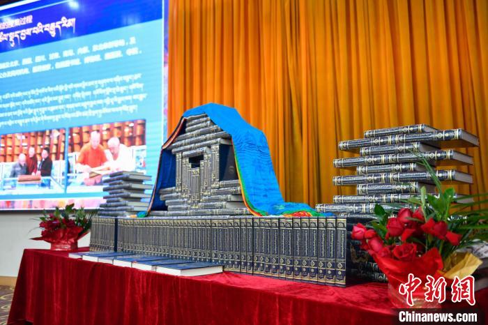 圖為《藏醫(yī)藥文獻(xiàn)大全》首發(fā)暨贈(zèng)書儀式現(xiàn)場。貢嘎來松 攝