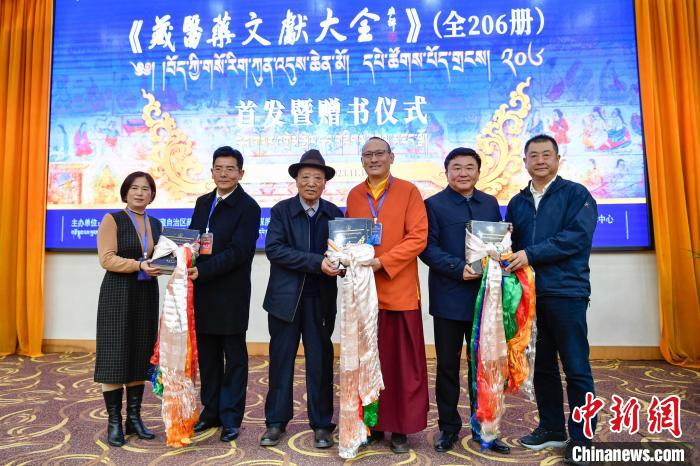 圖為《藏醫(yī)藥文獻(xiàn)大全》贈(zèng)書儀式現(xiàn)場。貢嘎來松 攝