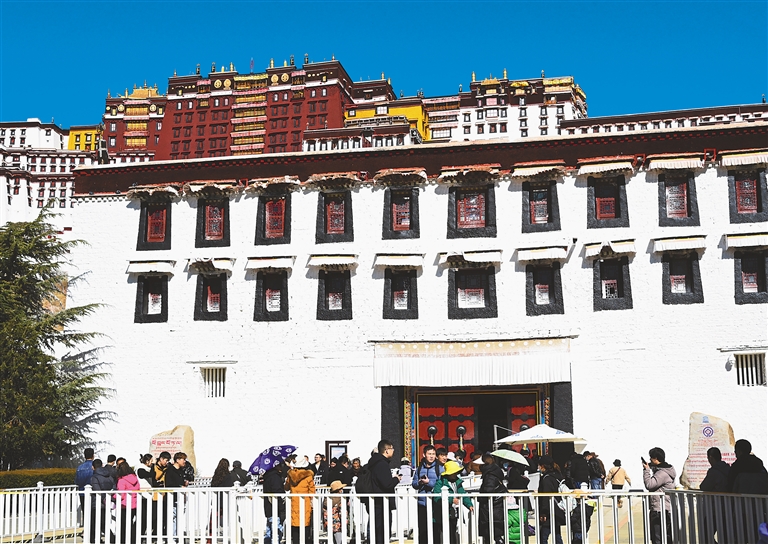 2023年11月1日至2024年3月15日為“冬游西藏”市場促進(jìn)活動(dòng)時(shí)間,在此期間,除寺廟景區(qū)外,西藏自治區(qū)所有A級景區(qū)免費(fèi)游覽?;顒?dòng)啟動(dòng)以來,布達(dá)拉宮作為游客來藏旅游的首選之地,日均接待量達(dá)4000余人次?!?/p>