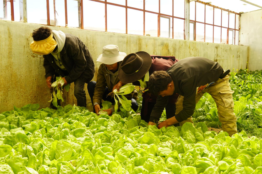 自治區(qū)交通運輸廳駐熱扎村工作隊依托蔬菜大棚為43戶群眾分發(fā)新鮮蔬菜。