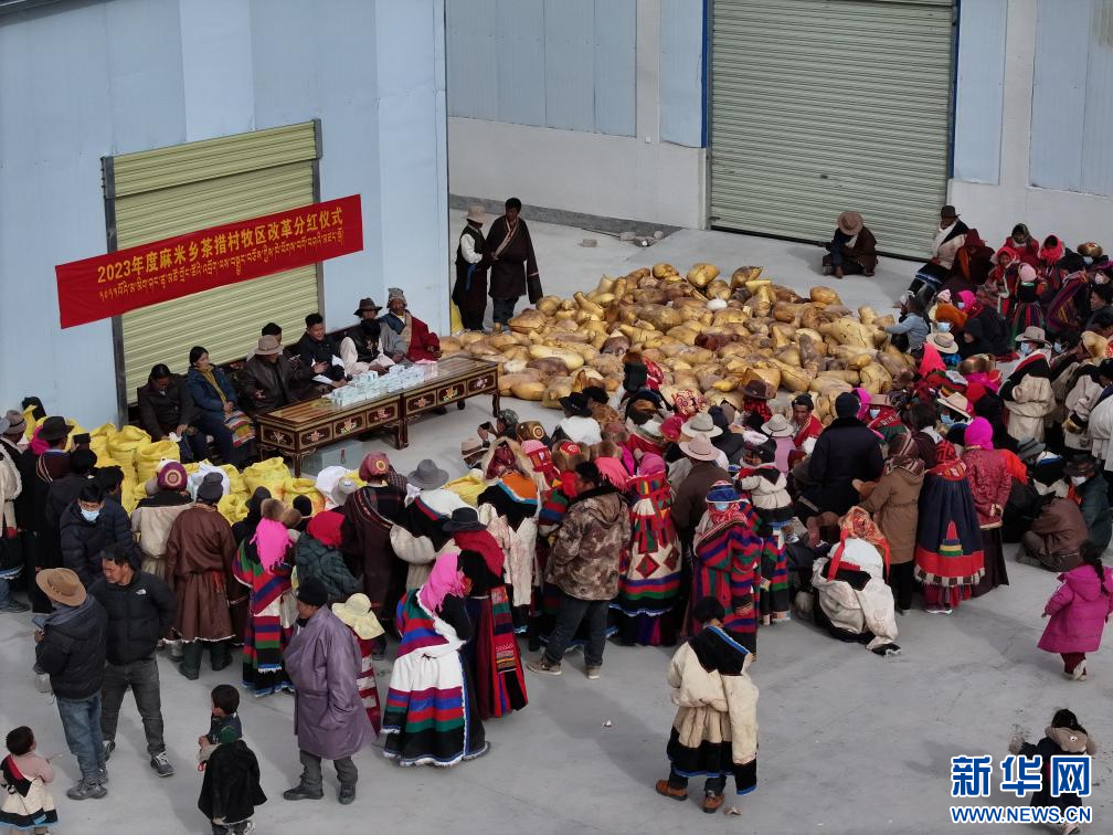 近日,西藏阿里地區(qū)改則縣麻米鄉(xiāng)茶措村舉行2023年度牧區(qū)改革分紅儀式。