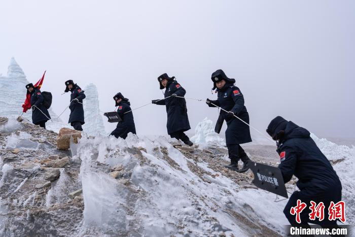 近日,西藏出入境邊防檢查總站普瑪江塘邊境派出所對轄區(qū)海拔5600米的崗布冰川(中不邊境)開展第332次巡邏。