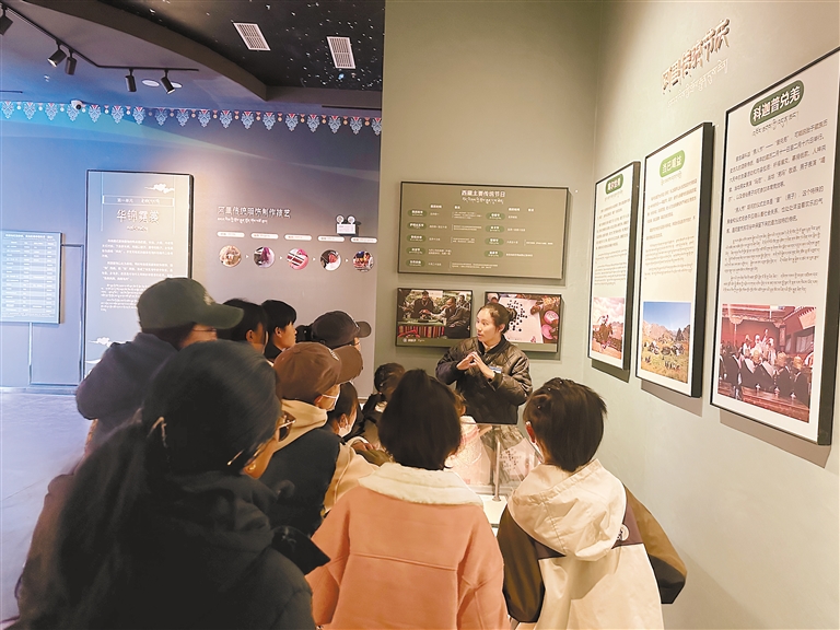 工作中,次仁央金總是能夠出色地完成講解任務(wù),每次講解后她還會(huì)把所感所得記錄下來,用來增加知識(shí)儲(chǔ)備,提高自己的工作能力。次仁央金說:“年輕人看待歷史、理解歷史,有自己獨(dú)特的方式和視角,所以我想在向前輩們學(xué)習(xí)的同時(shí),多融入一些年輕人的想法和創(chuàng)意,讓大家在參觀時(shí)不僅能學(xué)習(xí)歷史知識(shí),還能親身感受到博物館里的青春和活力,變得和我們一樣熱愛博物館。”