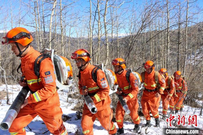 12月12日,西藏昌都森林消防邊壩駐防分隊(duì)清理枯枝等可燃物。昌都市森林消防支隊(duì) 供圖