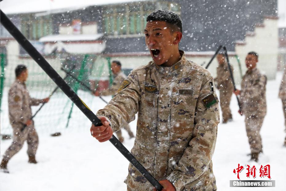 數(shù)九寒冬淬血性,雪地練兵正當(dāng)時(shí)。近日,位于海拔四千多米的雪域高原連降大雪,氣溫驟降,西藏山南軍分區(qū)某邊防團(tuán)充分利用嚴(yán)寒天氣組織官兵開展抗寒訓(xùn)練。官兵們圍繞刺殺操、擒拿格斗、對(duì)抗戰(zhàn)法等課目展開訓(xùn)練。