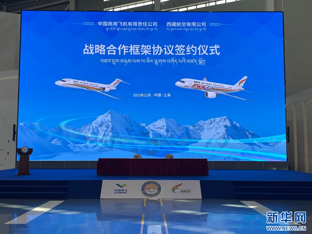 西藏航空與中國商飛簽署戰(zhàn)略合作框架協(xié)議現(xiàn)場(chǎng)。(西藏航空供圖)